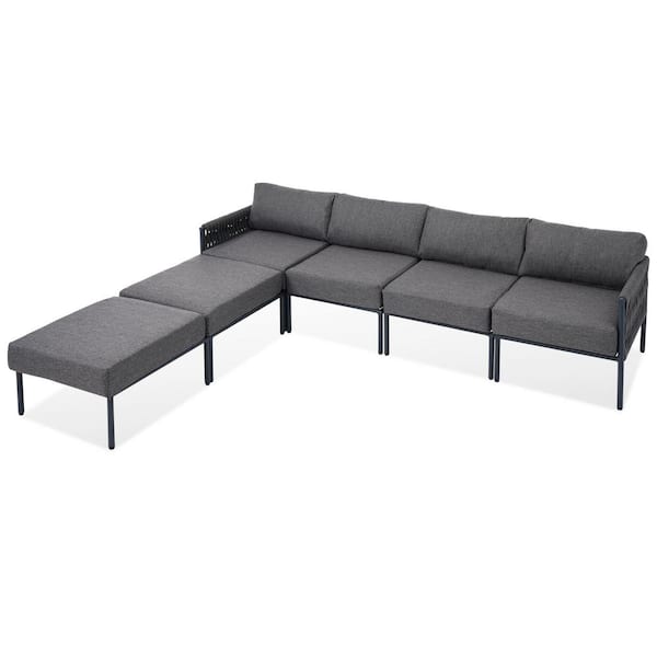 6-Piece Gray Aluminum Outdoor Day Bed with Removable Gray Cushions