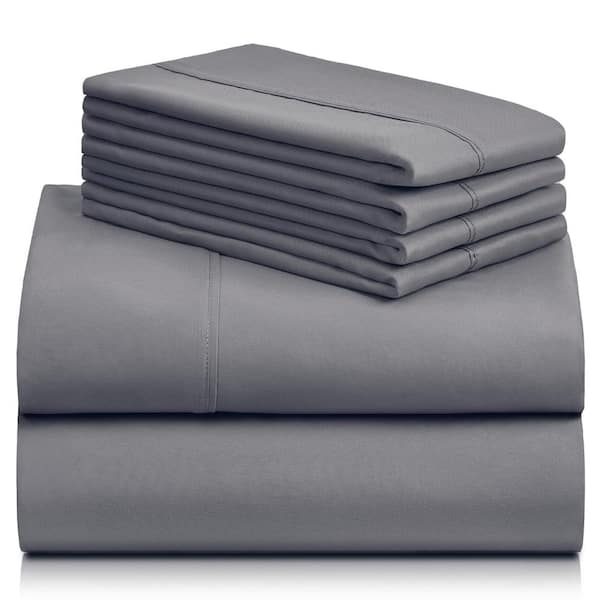 6-Piece Light Gray Microfiber Breathable Luxury Silky Soft King Sheet Set with 18 in. Deep Pockets for Hotel Bedding