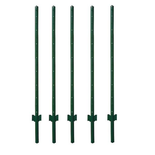 60 in. x 1.2 in. x 1.2 in. Metal Fence Post U Post Green for Garden Wire Fence Steel Garden Post Sign Post (5-Pack)