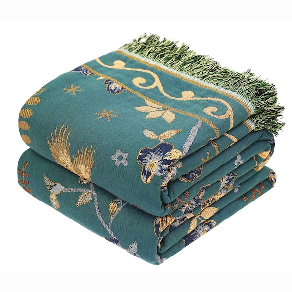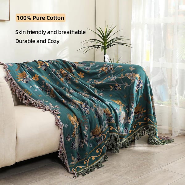60 in. x 80 in. Boho 100% Cotton Large Throw Blanket All Season Rustic Ultra Soft Breathable Floral Bird Blanket for Bed
