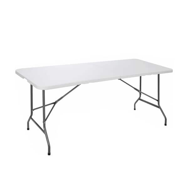 71 in. Collapsible White Rectangle Steel Picnic Table with Handle