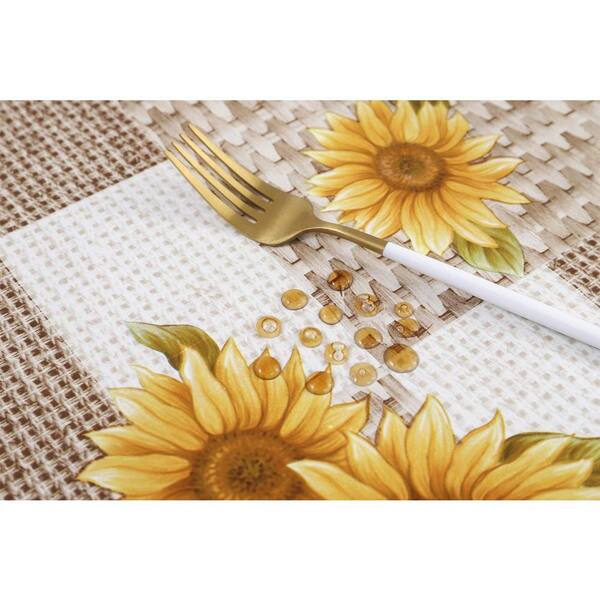 84 in. x 60 in. Waterproof Oil-Proof Indoor/Outdoor Vinyl Tablecloth with Flannel Backing for Picnic BBQ, Sunflower