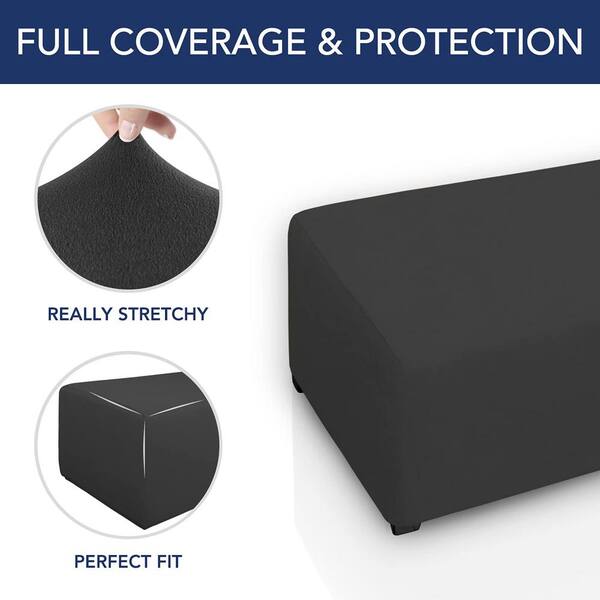 Dark Gray Polyester Large Super Stretch Soft Form Rectangular Ottoman Slipcover with Nonslip Elastic Bottom