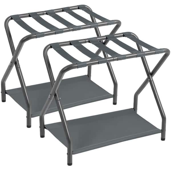Easy Assemble Foldable Metal Luggage Holder with Storage Shelf for Bedroom Hotel Hotel, Dark Gray (2-Pack)