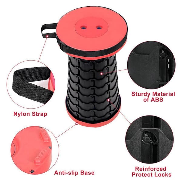 Foldable Retractable Camping Stools with Load Capacity 550 lbs., Red