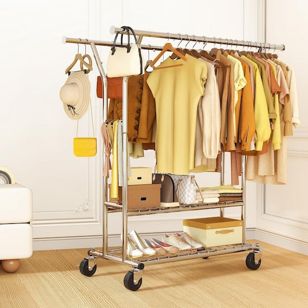 Heavy Duty Collapsible Metal Clothes Rack Collapsible Rolling Clothing Rack For Hanging Clothes (CR-Y)