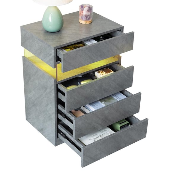 Modern 4 Drawer Nightstand with Adjustable LED Lights, 20 in. W x 15 in. D x 27 in. H, Grey