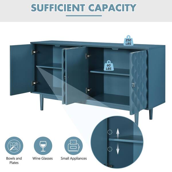 Modern Blue Wood 60.70 in W Sideboard with 4 Convex Pattern Doors and 2 Silver Handle for the Living Room