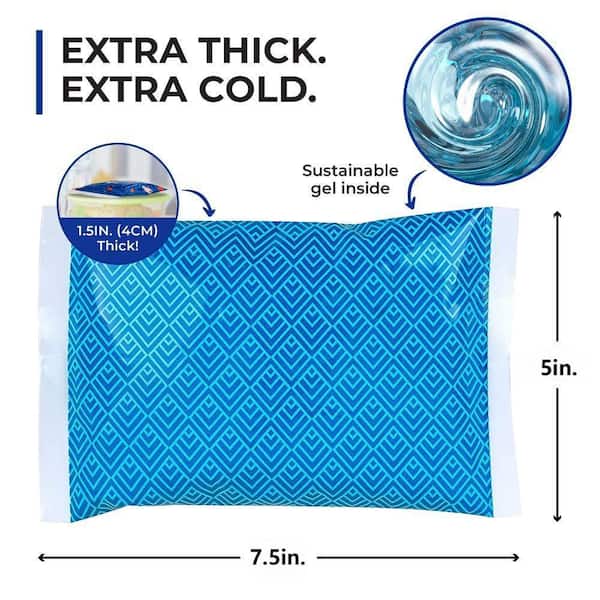 Reusable Lightweight Long Lasting Ice Packs in Blue Geometric Prints for Cooler, Beach Bags and Lunch Box (4-Pack)