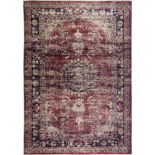 Angeline Red Distressed Washable 4 ft. x 6 ft. Area Rug
