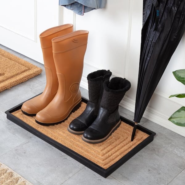 24.5 in. x 14 in. x 1.5 in. Natural and Recycled Rubber Boot Tray with Rectangle Embossed Coir Insert