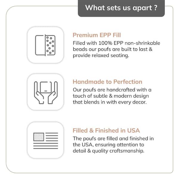 Ivory Cotton Pouf Ottoman-Diamond Design, Firm EPP Bead Filling, Footrest or Extra Seat for Living Room