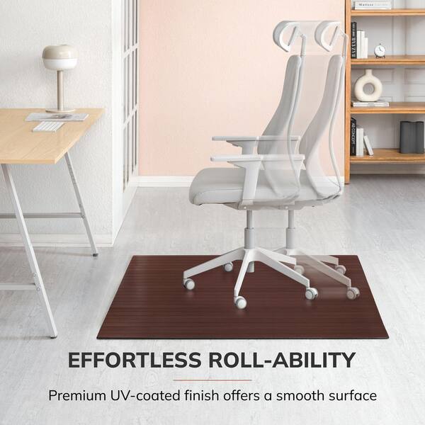 Standard Dark Brown Mahogany 48 in. x 60 in. Bamboo Roll-Up Office Chair Mat without Lip