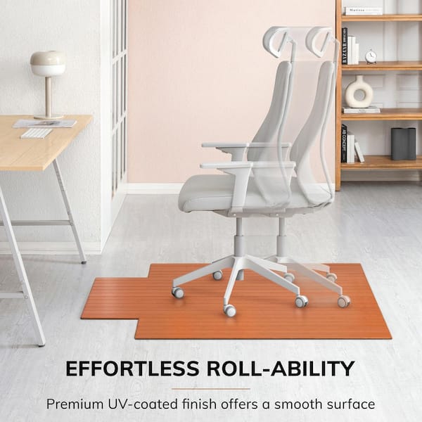 Walnut 44 in. x 52 in. Bamboo Roll-Up Chair Mat with Lip