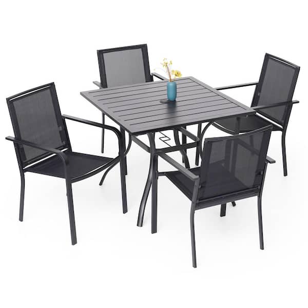 5-Piece Metal Patio Dining Set Square Table with 4-Stackable Chairs