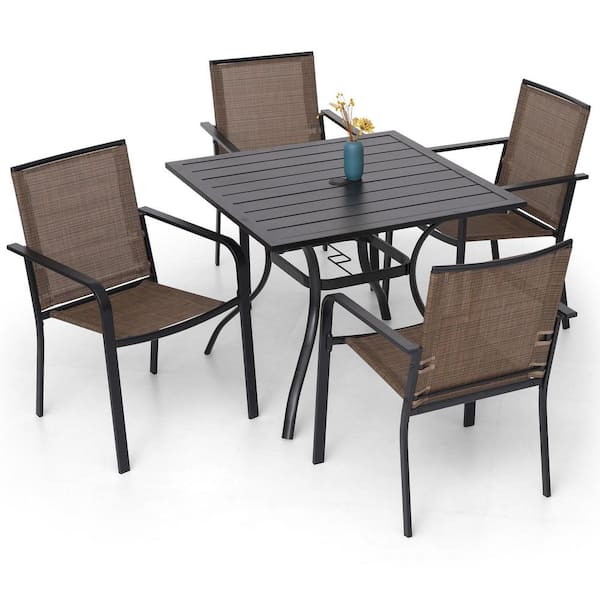 5-Piece Metal Patio Dining Set Square Table with Four Stackable Chairs