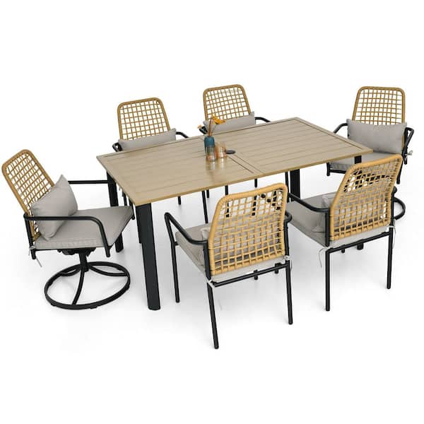 7-Piece Metal Outdoor Dining Set with Gray Cushion