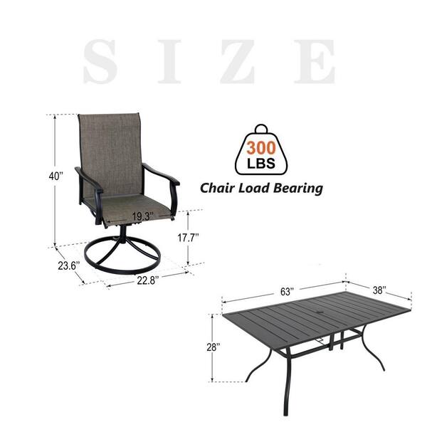 7-Piece Metal Outdoor Patio Dining Set Rectangular Dining Table with Six Sling Swivel Chairs-Brown