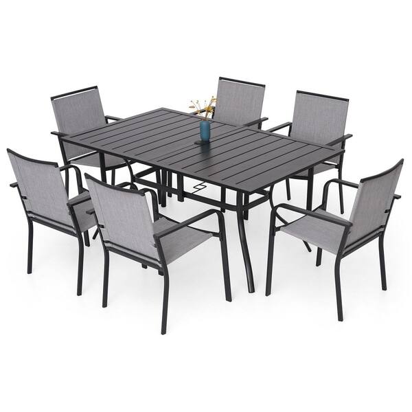 7-Piece Metal Rectangular Outdoor Dining Set-Gray