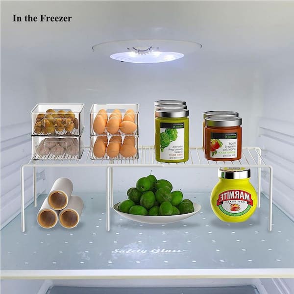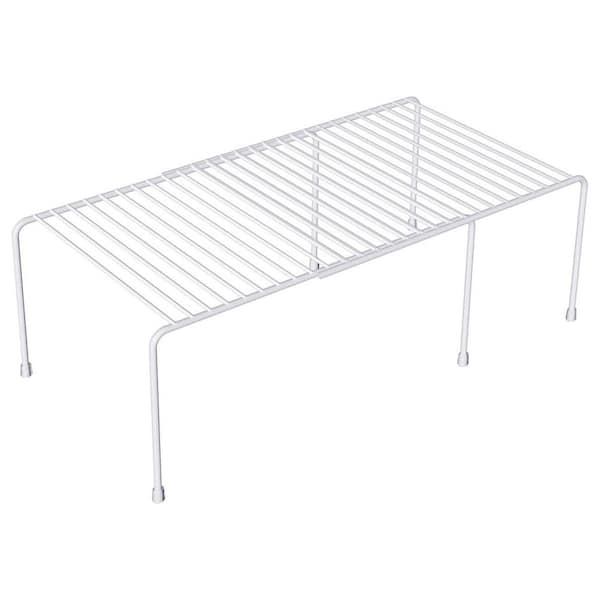 2-Shelf White Expandable Storage Rack Scratch Resistant Feet Kitchen Cabinet Counter Organizer