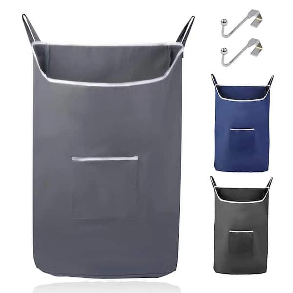 3.75 in. L x 20 in. W x 31 in. H Rectangular Hanging Laundry Hamper Bath Accessory with Zipper & Over-Door Hooks in Gray