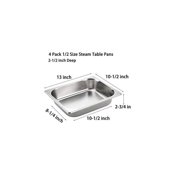 4 Pack 4 qt. Silver Stainless Steel Steam Table Pans Buffet Food Warmer Tray with Oven Safe Easy Clean Stackable