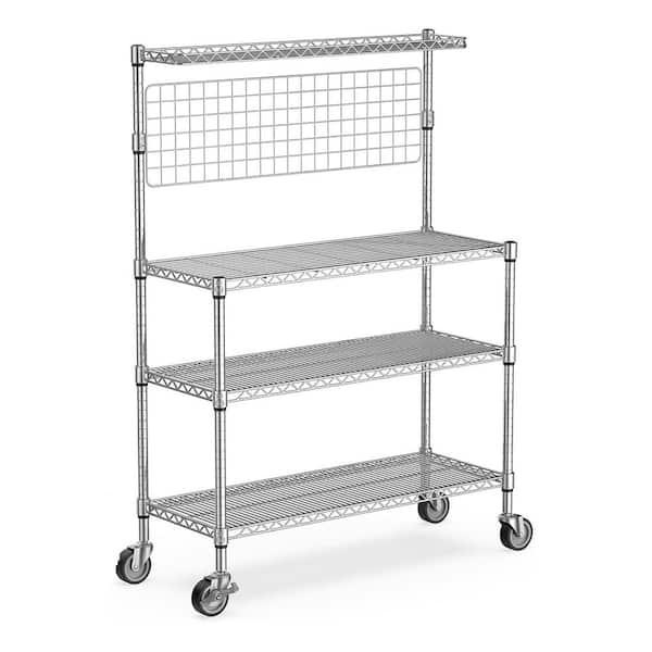 42 in. x 18 in. x 63 in. 4-Tier Kitchen Bakers Rack with Wheels 20 S-Hooks in Chrome