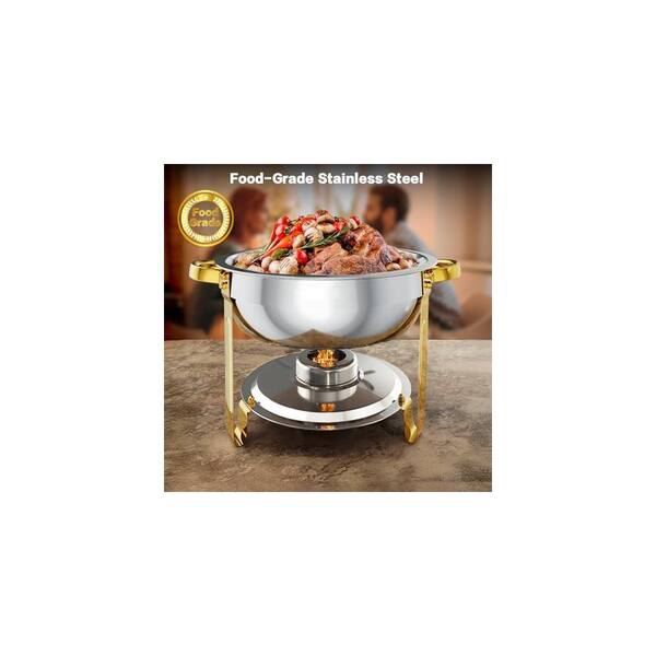 5 qt. Round Chafing Dish Gold Silver Stainless Steel Buffet Server Set with Stackable Easy Clean Design 4-Pack