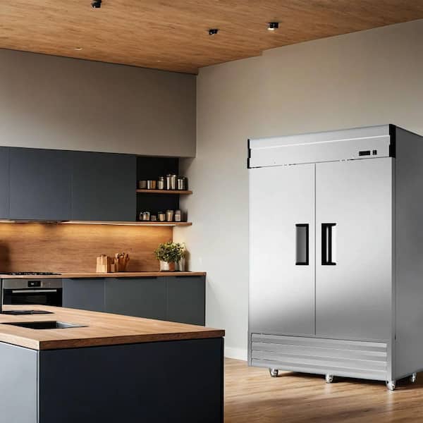 54 in. 49 cu. ft. 2 Door Dynamic Stainless Steel Commercial Refrigerator with Digital Thermostat, LED & 6 Shelves