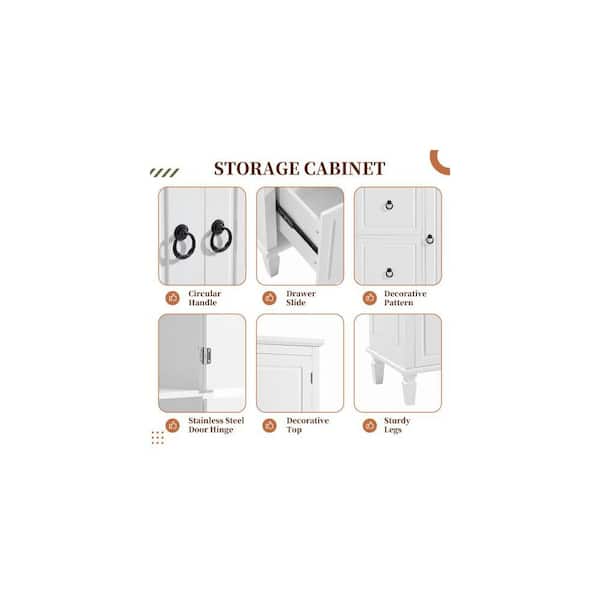 61.70 in. H x 15 in. W x 30.60 in. D Wood Kitchen Cabinet with 3 Drawers and 3 Enclosed Compartments in White