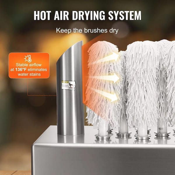 8-Brush Electric Wine Glass Polisher Machine w/ Hot Air Drying for Bars and Restaurants Stainless Steel