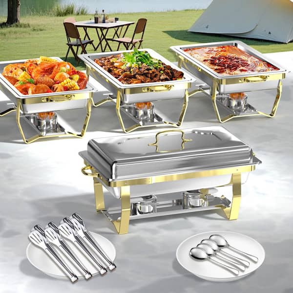 8 qt. Semi Gold Chafing Dish Buffet Set Stainless Steel Food Warmers Complete Set with Food Clip Spoon 4 Pack