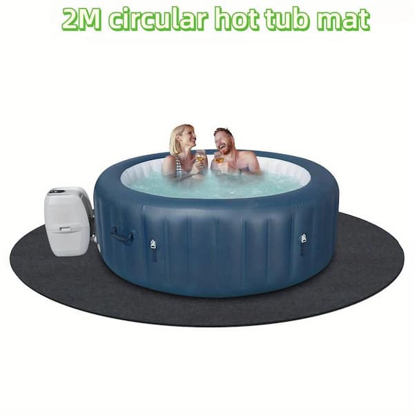 80 in. L x 80 in. W x 0.09 in. H Round Shower/Sauna/Tub Accessory Hot Tub Mat with Slip-Proof Backing in Gray Black