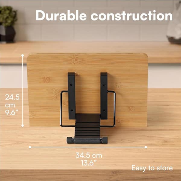 Bamboo Recipe Holder-Foldable & Portable Cookbook Stand for Desk & Adjustable Holder for Reading in Bed or Kitchen