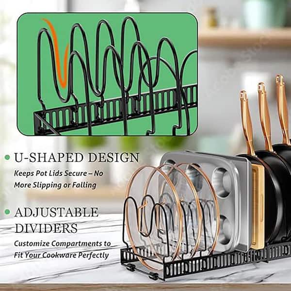 Black Adjustable Kitchen Rack Pot Rack for Under Cabinet Versatile Organizer for Lids Cutting Boards Cookware