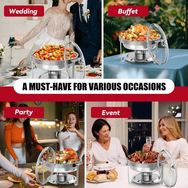Chafing Dish Buffet Set 4 Pack 5 qt. Silver Stainless Steel Catering Warmer with Glass Lid Stackable Easy Clean