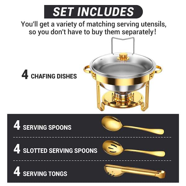 Chafing Dish Buffet Set 5 qt. Gold-Glass Stainless Steel Buffet Server with Rolled-Edge Design Food Warmer 4 Pack