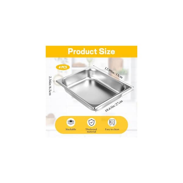Half Size Hotel Pans 4 qt. Silver Stainless Steel Steam Table Pan with Anti-Jam for Catering Buffet Set Chafing Dishes