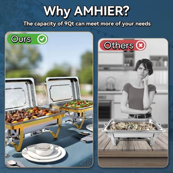 High Grade Chafing Dishes Buffet Set 9 qt. Gold Silver Stainless Steel Food Warmer with Rolled Edge 4 Pack