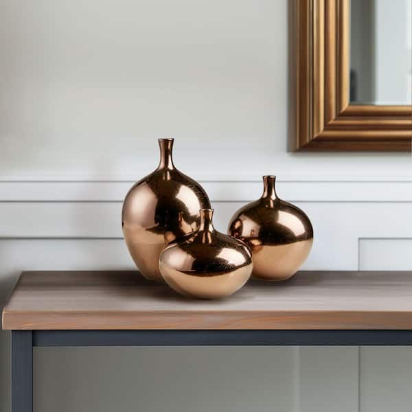 Ansen 3-Piece Bronze Mirrored Ceramic Decorative Vases 3-piece set