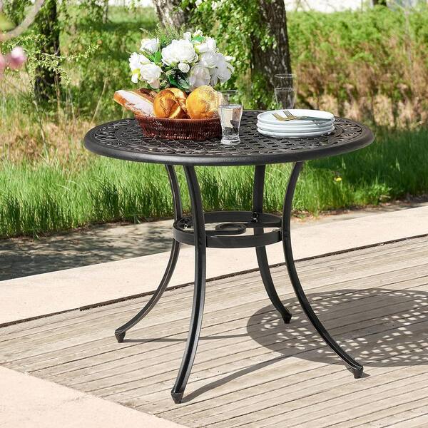 Antique Bronze 31.5 in. Round Cast Aluminum Outdoor Dining Table with Umbrella Hole