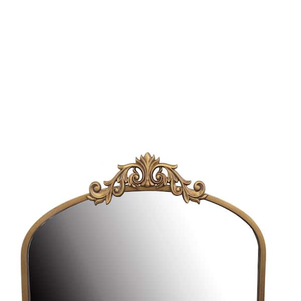 Antique Bronze 43 in. W x 24 in. H Vintage Ornate Arched Metal Framed Mirror