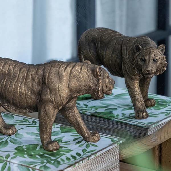 Antique Gold 11 in. x 5 in. Resin Tiger Home Decor Decorative Statue, Gleaming Coppery Finish