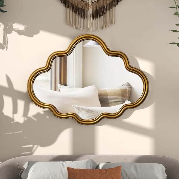 Antique Gold 40 in. W x 29.5 in. H Irregular Decorative Wall Mirror Asymmetrical Cloud Shape Wall-Mounted Mirror