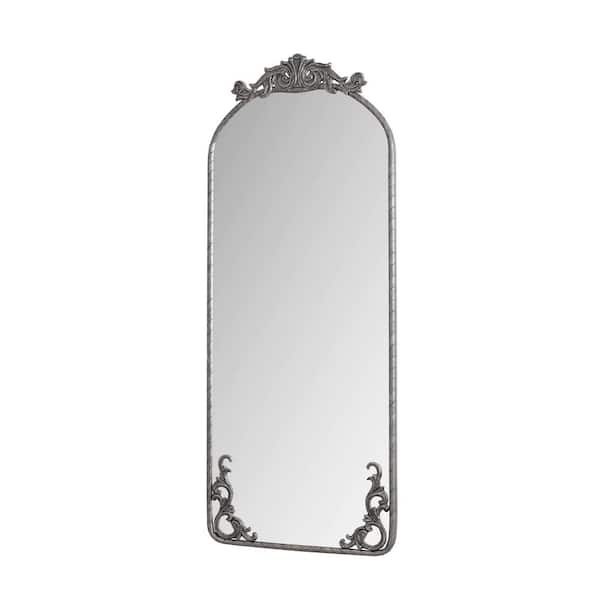 Antique Silver 24 in. W x 58 in. H Arched Metal Iron Framed Full Body Wall Mirror with Carved Applique