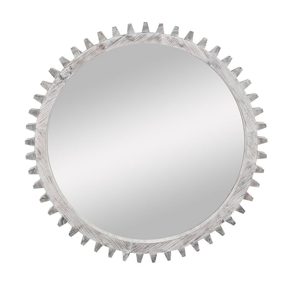 Antique White Washed 42 in W x 42 in. H Round Wood Framed Mirror