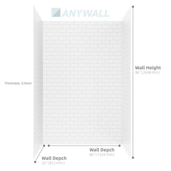 60 in. x 32 in. x 96 in. 3-Piece SMC Full Shower Wall Set in White Subway Title Pattern