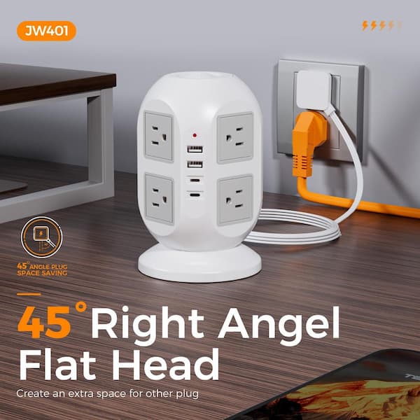 10 ft. Power Strip Tower 8-Outlet AC 1800 Joule Surge Protector Extension Cord with and 4 USB Ports (2 USB C)