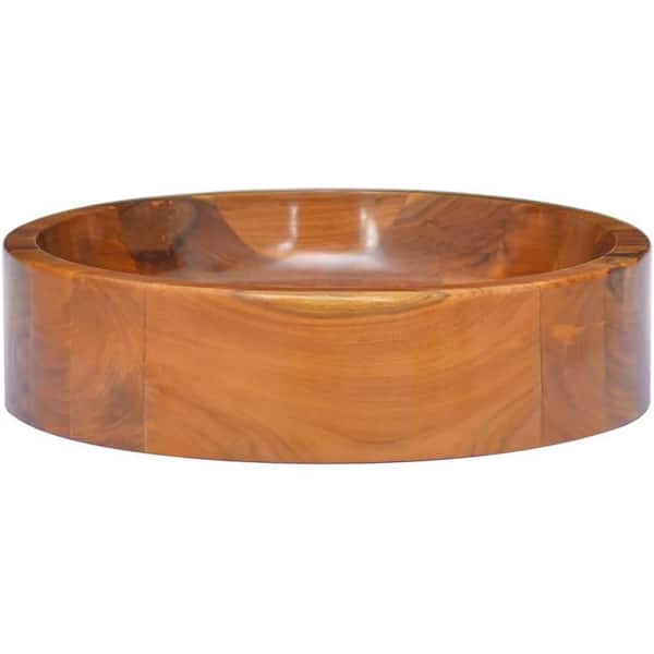 15.7 x 15.7 in. Round Basin Solid Wood Teak Sink in Brown