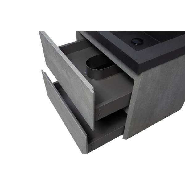 19.75 in. D x 30 in. W x 22.5 in. H Single Sink Floating Bath Vanity in Gray with Black Quartz Sand Top Basin